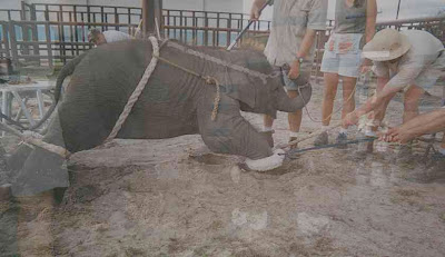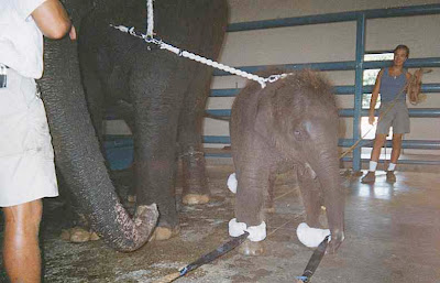 En el "refugio y escuela" de este circo, los elefantes son capturados desde pequeños, encerrados junto con otros bebés en galerones de cemento y encadenados para hacerles sentir vulnerables, solos y sin cariño. Su proceso de educación empieza con ello. Cuando empiezan a salir del galerón a caminar y "conocer el mundo" lo hacen amarrados de cuello y patas y rodeados por humanos que no los dejan solos ni a sol ni a sombre y que llevan en todo momento palos con picos de metal capaces de perforar su piel para hacerlos entender quien manda. Una vez que han salido al mundo, el siguiente paso es "entrenarlos" y esto se hace con cuerdas, los mismos picos punzantes y toques eléctricos, siempre rodeados de humanos que tiran de ellos, los empujan, jalan, golpean, dan toques y les enseñas -literalmente con sangre- qué es lo que tienen que hacer.